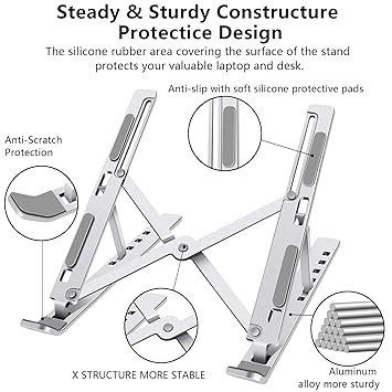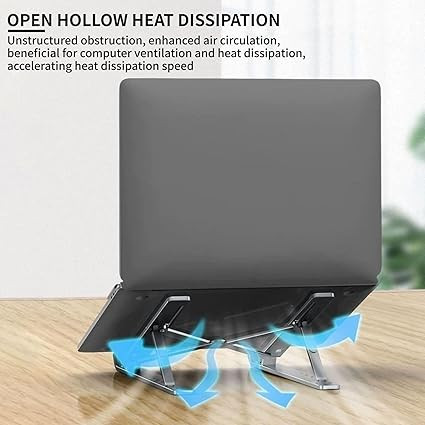Crafted from sturdy, lightweight materials, this foldable and portable laptop stand is easy to carry anywhere – from office desks to home study tables, or even while traveling. The open ventilation design ensures better airflow, keeping your laptop cool during long hours of use.